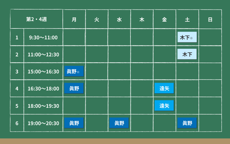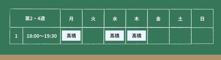 | 月1回 | 月2回 | 月3回 | 月4回 | |