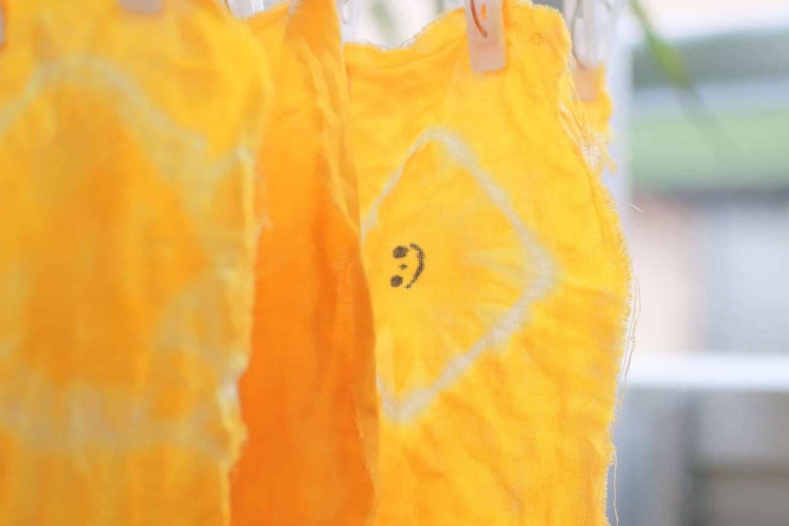 輪ゴムや紐を使って、簡単な絞り染めにもチャレンジ!オリジナルのランチョンマットを作りましょう。