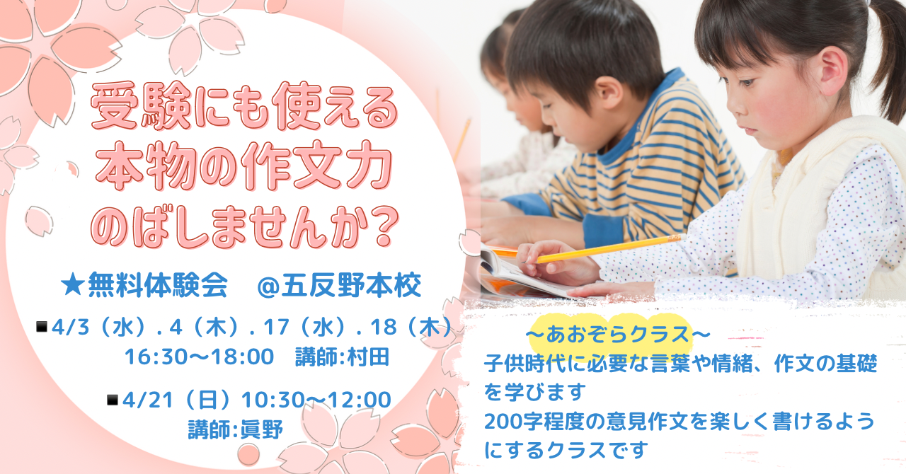 🌸4月 五反野本校 あおぞらクラス 無料体験会のお知らせ🌸