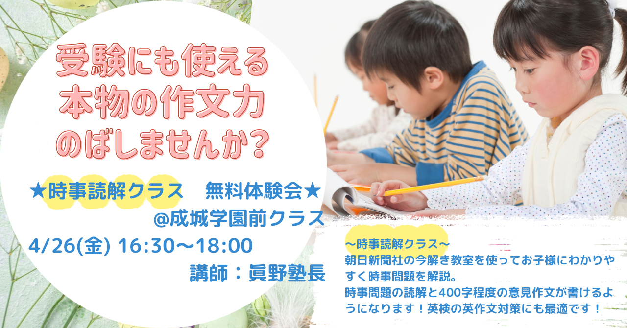 🌸4月26日(金) 成城学園前 時事読解クラス 無料体験会のお知らせ🌸