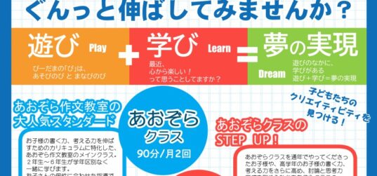 お知らせです!追加体験会を行います。 あおぞらクラス、思考力クラスは、通常授業で作文発表会を各クラスで行なっているため、別の日程で体験会を行いますね。 体験の際に「〇〇さんの紹介です」と... 続きを読む