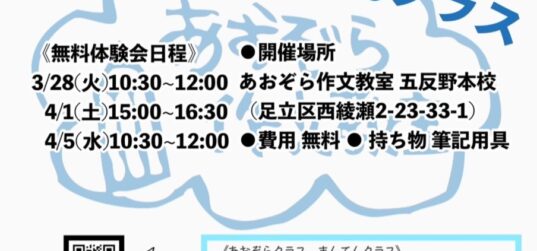 プロが教える!受験作文 個別指導の「あおぞら作文教室」| 五反野・阿佐ヶ谷・早稲田・北千住・成城学園前