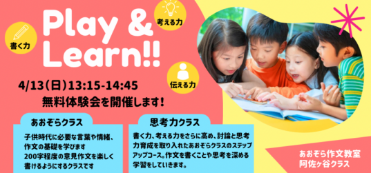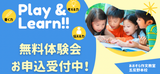 五反野本校にて 無料体験会を開催します! 入学、進級に伴い、たくさんの体験お申込みをいただいております💗 楽しく💗お子さまの作文力を伸ばしたい、表現力を高めたい、または自己表現の方法を学... 続きを読む