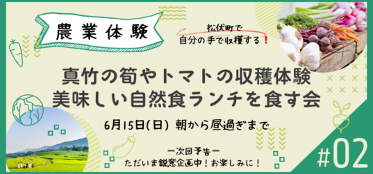 6月15日(日) 農業体験🌟真竹の筍やトマトの収穫体験と美味しい自然食ランチを食す会🌟