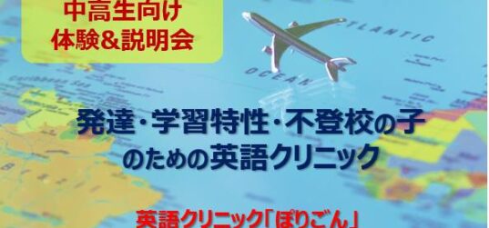 英語クリニック「ぽりごん」体験&説明会のご案内発達特性や学びにくさを持つお子さん、不登校のお子さんが、安心して学べる英語クリニックをスタートします。学校に行くのが辛いと感じている子や、コミュニ... 続きを読む