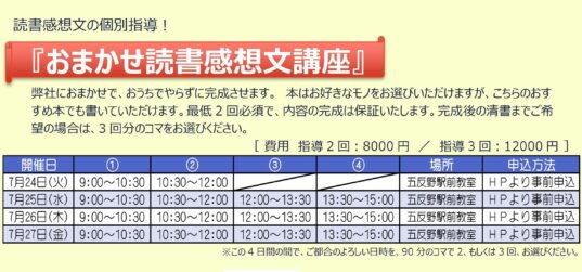 おまかせ読書感想文講座(90分×ご希望回数)7月24~27日