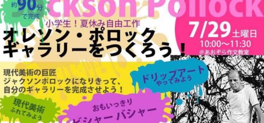 小学生☆夏休み自由工作 オレソンポロックギャラリーをつくろう!!講座 現代美術の巨匠”ジャクソン・ポロック”になりきって、 思いっきり絵具を画面にビシャーバシャーとドリップして、 楽しく作品を作りま... 続きを読む